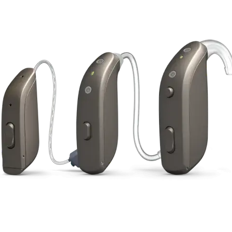 Hinter-dem-Ohr-Hörgeräte sind besonders leistungsstark und somit auch für stärkere Hörminderungen geeignet. Sie sind angenehm zu tragen sowie einfach in der Bedienung und Handhabung. Die Hörgeräte können farblich an den Hautton des Trägers angepasst werden, wodurch sie dezent in der Erscheinung sind. Alle Hörgeräte bei AudioMee verfügen über integriertes Bluetooth und Steuerung per App.