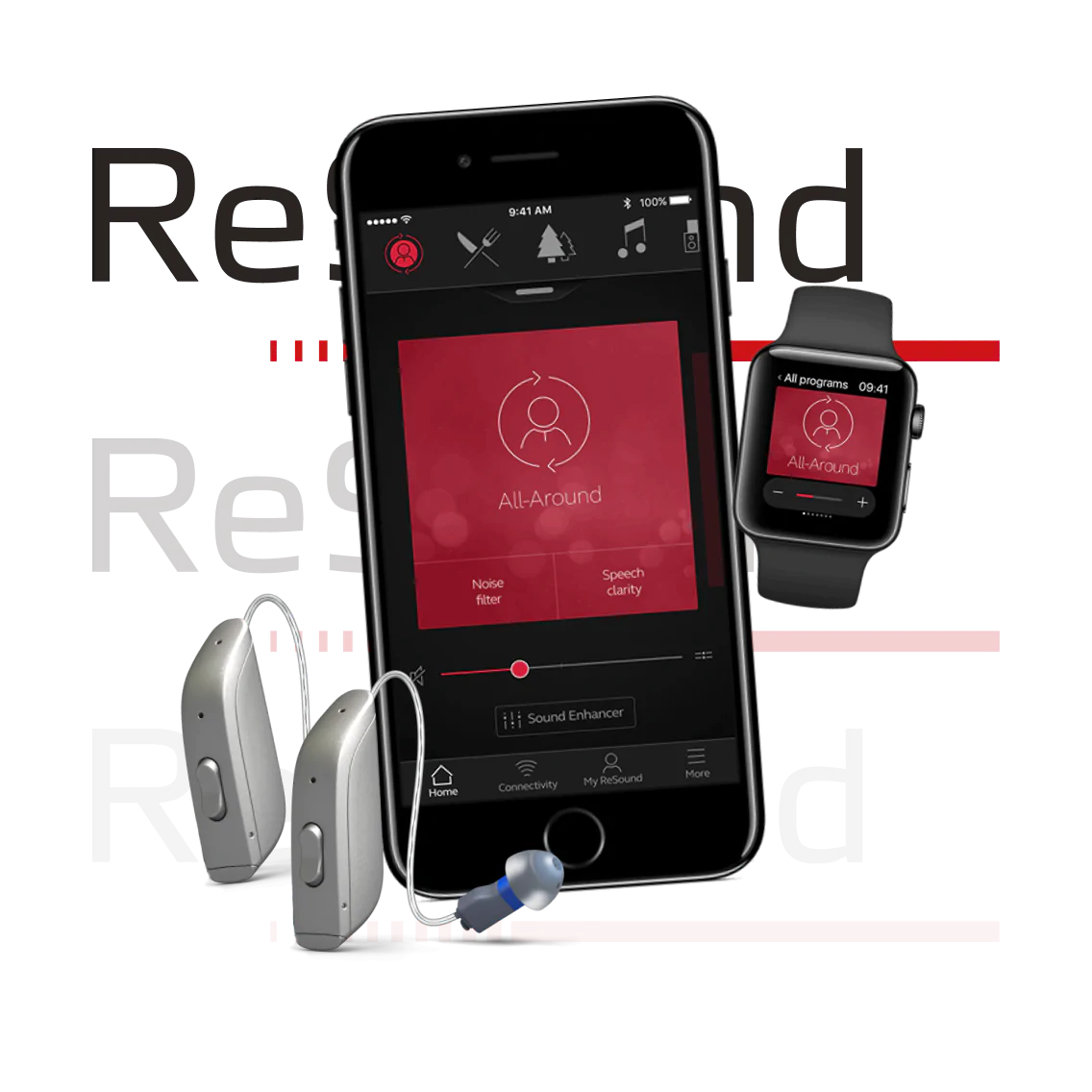 Bei ReSound gibt es zwei relevante Apps für Hörgeräte-Träger. Die ReSound Smart 3D App wird zur Steuerung der Hörgeräte per Smartphone und zur Fernwartung genutzt. Die ReSound Relief App wird zur Tinnitustherapie genutzt. Beide Apps sind kostenfrei.