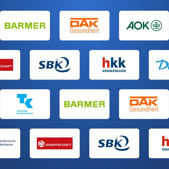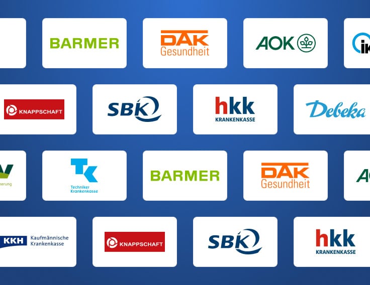 Wir arbeiten ausnahmslos mit allen Krankenkassen zusammen, nachfolgend die bekanntesten: